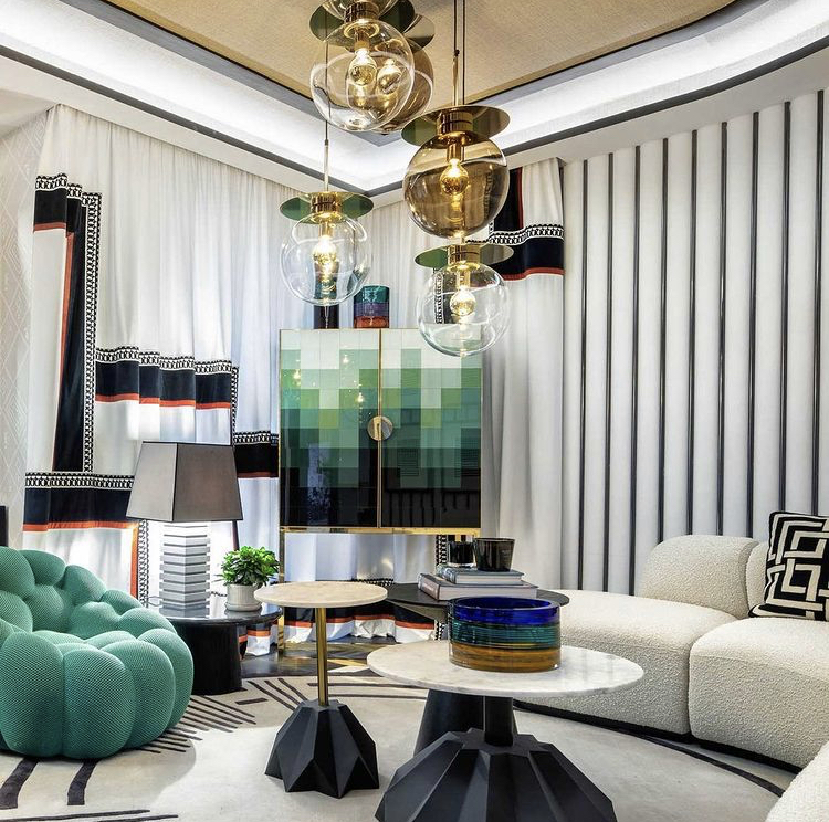 Este espacio abierto cuenta con un separador central para crear diferentes ambientes donde poder reunirse y compartir. Apuestan por la combinación de materiales, diseño geométrico en blanco y negro y formas orgánicas.